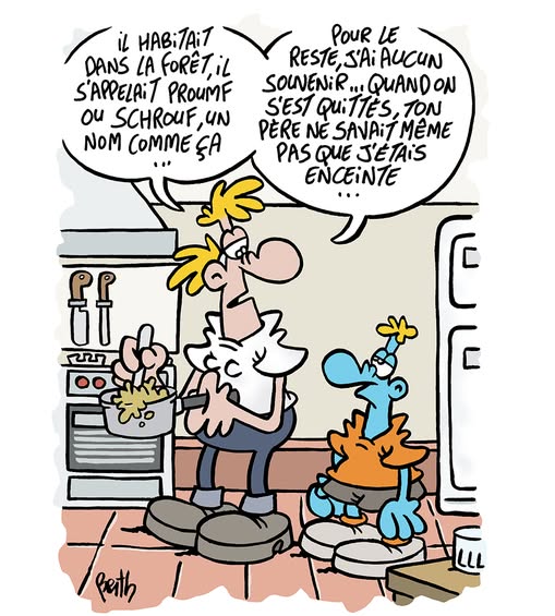 Heute habe ich gelacht als ich nebenstehenden Bilderwitz (von Berth) sah. (Tipp für Deutsche: Die Schlümpfe heißen „Schtroumpfs“ in Französisch…).
